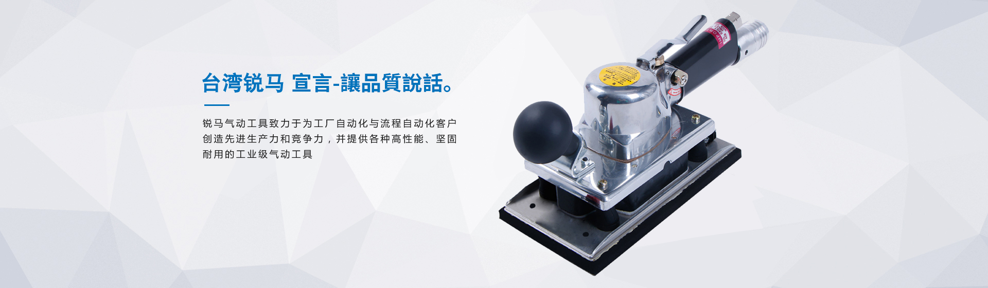 銳馬氣動工具廠家是臺灣專業制造氣動工具廠"筌誠機械工業",30多年來致力于氣動/電動工具領域之研發(fā),生產和銷售,努力提升本身產品價值,在臺灣氣動工具制造領域始終處于領先地位,并成功銷往國際市場。